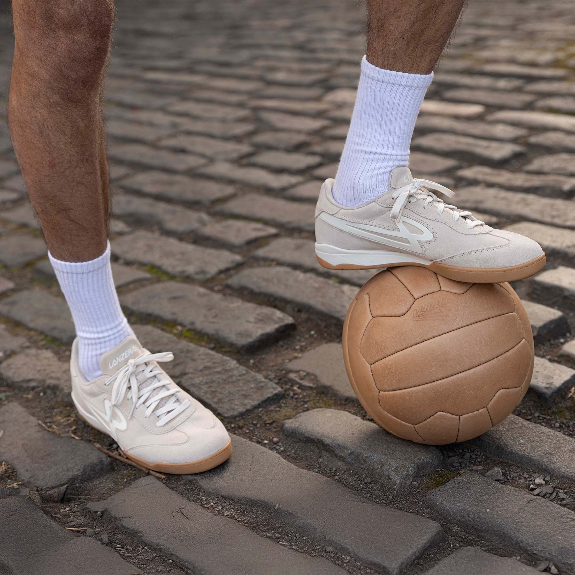 Made from soft crema white suede, it delivers a natural feel and touch that improves with every wear. The non marking gum outsole provides traction and control for sharp turns and quick play, while a padded collar and cushioned insole keep you comfortable long after the final whistle.