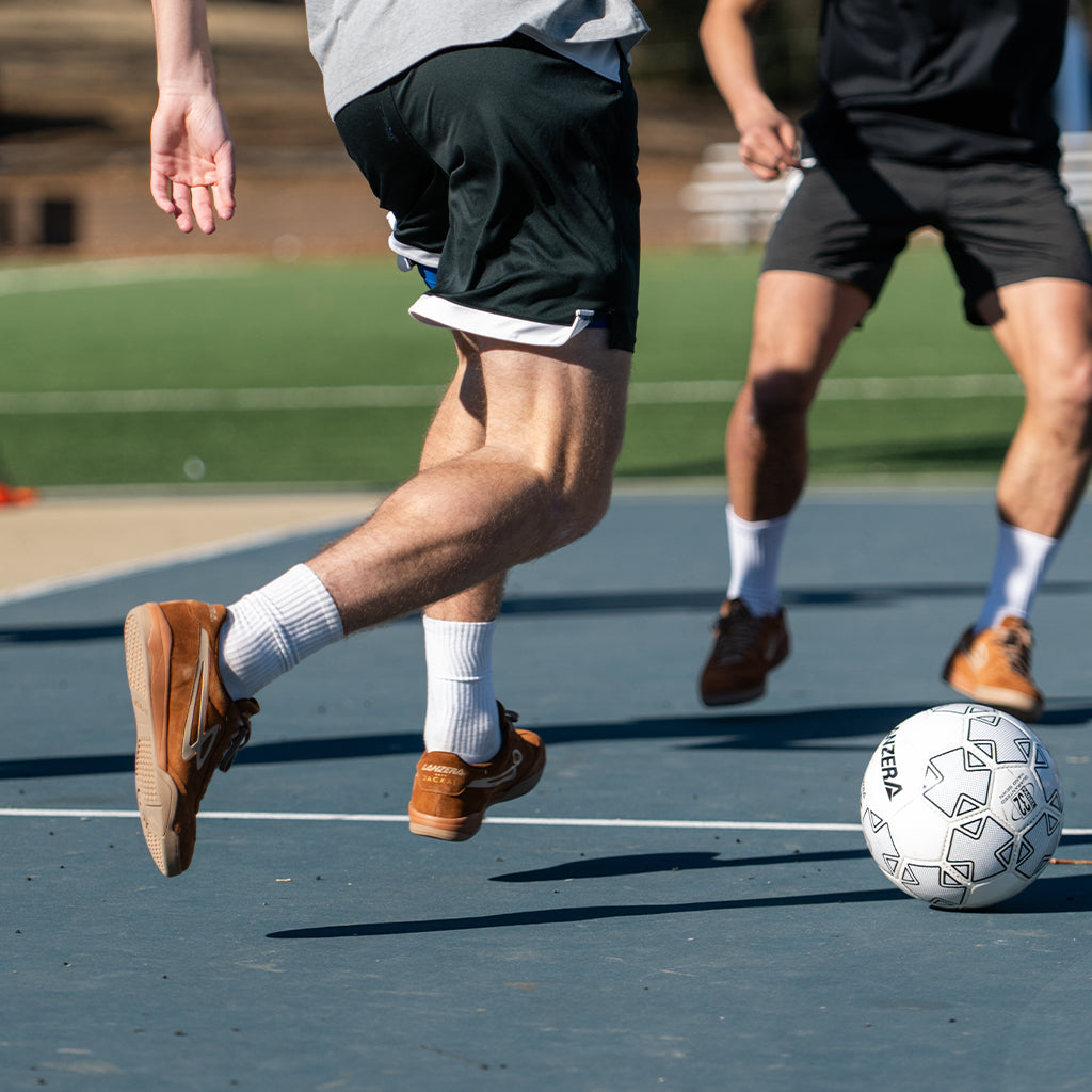 Introducing the Jackal in Caramello brown—a distinctive mix of performance and modern design. Crafted from premium suede leather, it provides a soft, velvety touch with enduring durability. The non-marking gum rubber outsole offers optimal traction, enhanced ball control, and agile movement on indoor surfaces. Off the field, a padded collar and cushioned insole guarantee all-day comfort, while its sleek design transitions effortlessly from the pitch to casual occasions. With Lanzera’s renowned quality, the Jackal in Caramello is your ultimate indoor football and lifestyle sneaker.